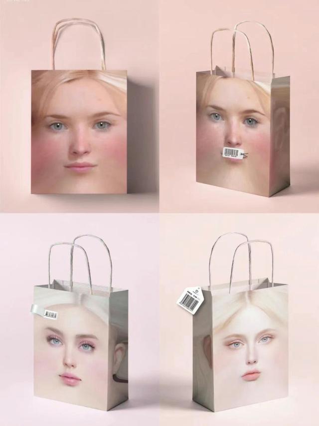 当普通低廉的牛皮纸袋上印制着一张张芭比娃娃的面孔,就变成了可复制的、可批量生产的“她们”。在这样的面孔的注视下或许会引起我们的思考,同样这样戏谑的画面隐含着的是生活中的很多方面,似乎这些方面下人们的行为和思想是女性被物化的本源。同时也期望社会能为女性营造相对公平安全的环境。