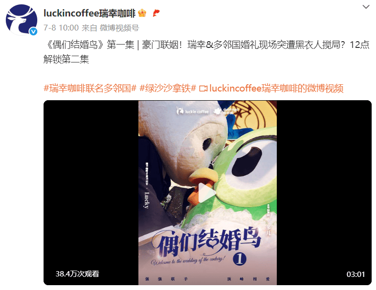 就比如前段时间火爆全网的“婚礼”,瑞幸和多邻国通过一系列精心包装的“假婚礼”,一周时间就让900多万人心甘情愿的交了“份子钱”,靠的就是一整套能持续提供新鲜感与感官刺激的服务设计。