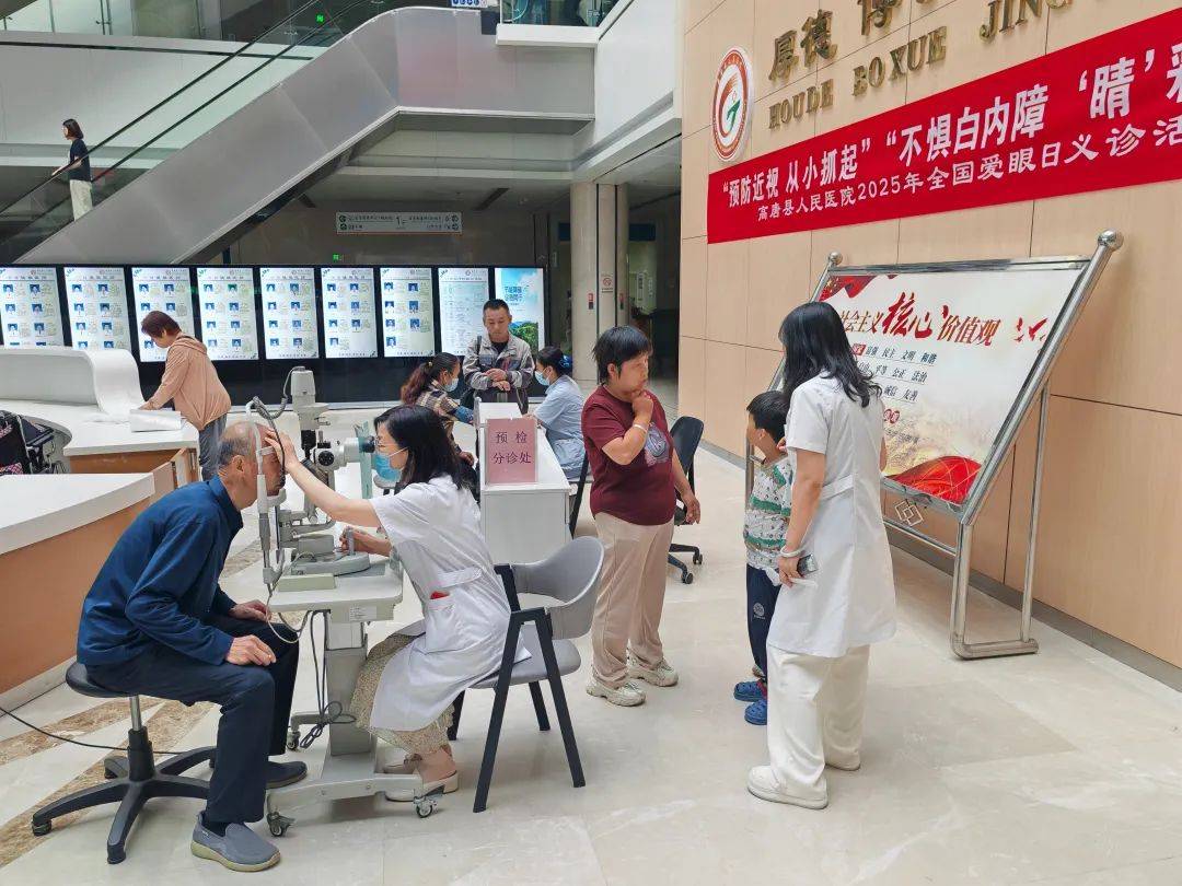 2025年6月6日是第三十个全国爱眼日。6月1日上午,高唐县人民医院眼耳鼻喉科医护团队,在门诊一楼大厅举办“预防近视 从小抓起”,“不惧白内障 ‘ 睛’彩有保障’”全国爱眼日主题义诊活动,为群众提供免费眼部检查、科普宣教及护眼指导,以实际行动守护群众“光明防线”。