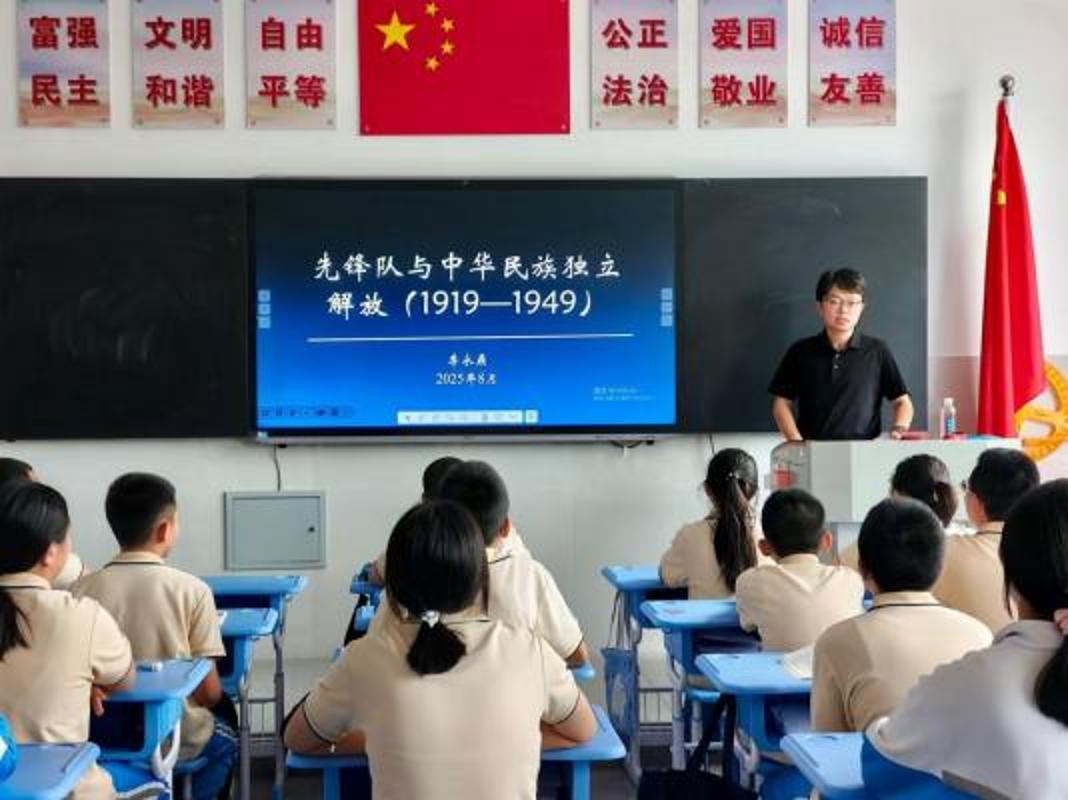 社会实践支教团带队教师、崇实书院辅导员李永鼎为同学们带来了主题为“先锋队与中华民族独立解放”的《中华民族共同体概论》专题思政课。李永鼎运用生动的史实、珍贵的图片和感人的故事,深情回顾了中国领导中国人民为争取民族独立和人民解放所进行的艰苦卓绝的伟大斗争,特别讲述了党领导内蒙古地区少数民族同胞开展的革命斗争工作。课程着重阐释了新民主主义革命时期的民族政策,引导学子们铸牢中华民族共同体意识,将爱国情、强国志、报国行融入成长血脉。这堂生动的思政课在师生中引发热烈反响。